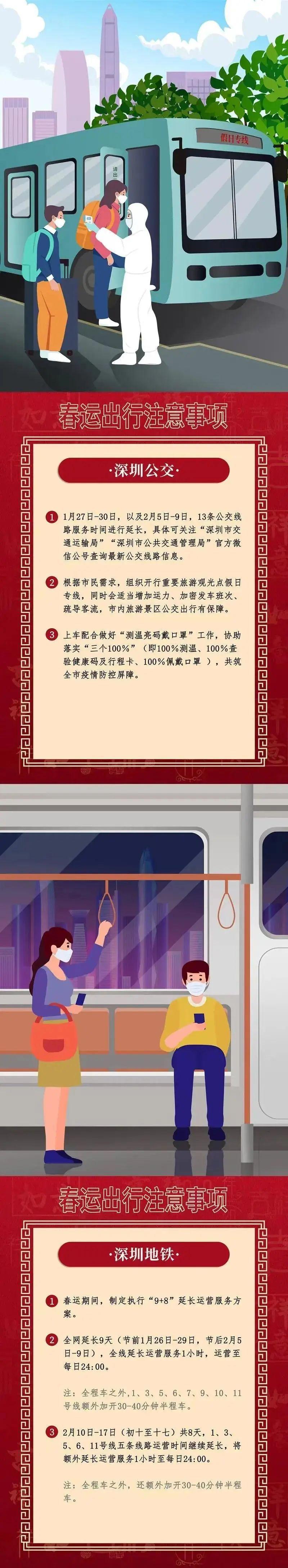 节前,依照每日0时至7时列车始发情况,延长101、337、M112、M205、M239、M508线等6条公交线路往罗湖方向服务时间,保障各次列车旅客可提前30-60分钟到达深圳站;节后,依照每日22时至次日6时列车终到情况,延长6条公交线路罗湖端始发时间,保障旅客可于各次列车到达后30分钟内离开深圳站。