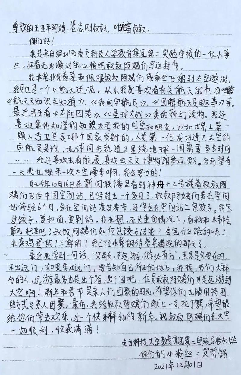 超暖心!中国航天员首次太空跨年!南山小学生送上“特别礼物”