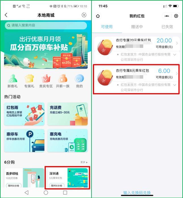 6分钱购买6元深圳通红包