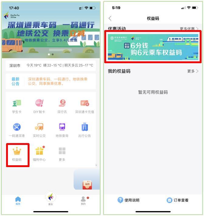 活动五:6分购深圳通6元乘车红包