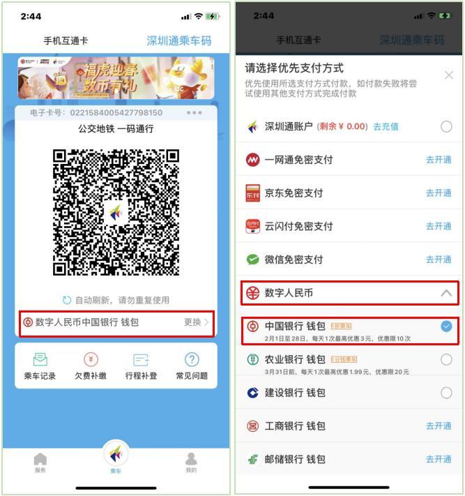 活动二:中行数币一折乘车