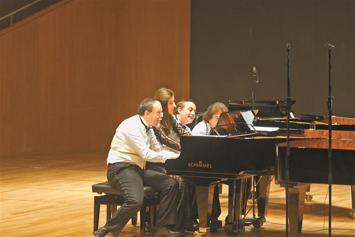 四位外国钢琴家在尽情演奏《加洛普进行曲》。刘元举 摄