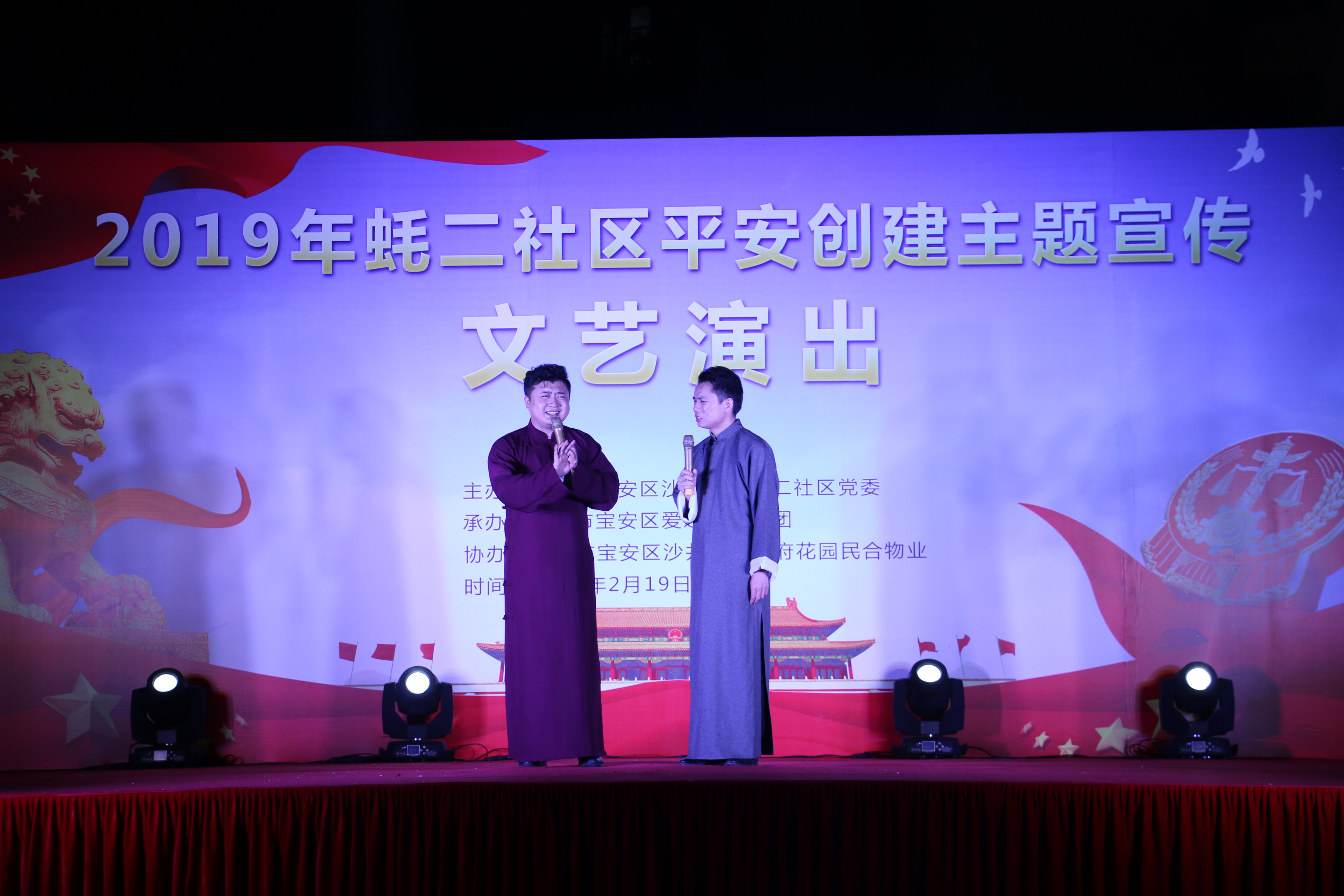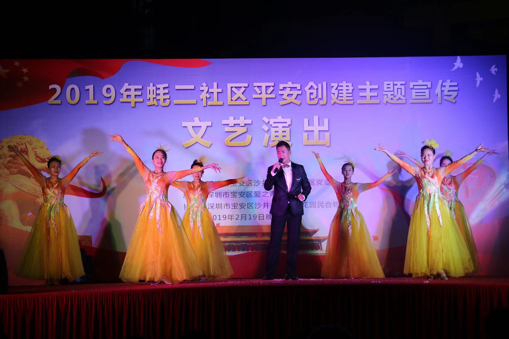 深圳新闻网2019年2月20日讯 (记者/周锦春 通讯员/孙善文)2月19日是元宵节,当晚,由宝安区沙井街道蚝二社区党委主办,宝安区爱之声艺术团承办的“平安创建宣传”文艺演出活动在学府花园举行。本次活动包括了戏曲、歌曲、舞蹈、小品、魔术等多种形式,丰富多样,生动有趣,为近500名社区居民提供了一场精神盛宴。