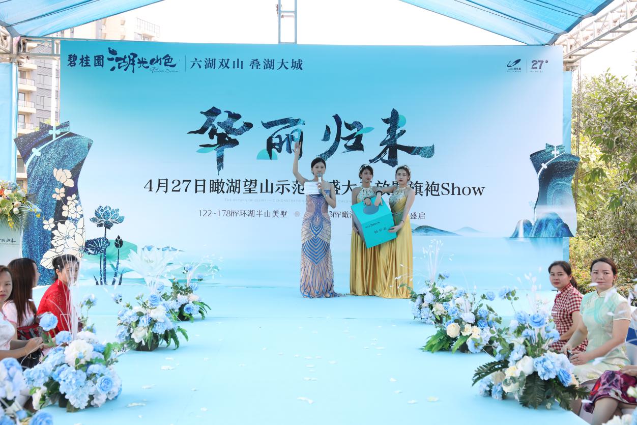 4月27日,瞰湖望山洋房示范区盛大开放暨旗袍Show“华丽归来”,在现场展开一场盛大的“最美湖光旗袍达人”活动。深圳市梓嘉服饰有限公司总经理、深南故事品牌创始人、深圳市深南故事文化发展有限公司总经理李思叶女士,作为中国国粹和女性国服——旗袍的倡导者,也是本次旗袍活动的引领者,在现场演绎中国文化中女性的独立与自信的精神。