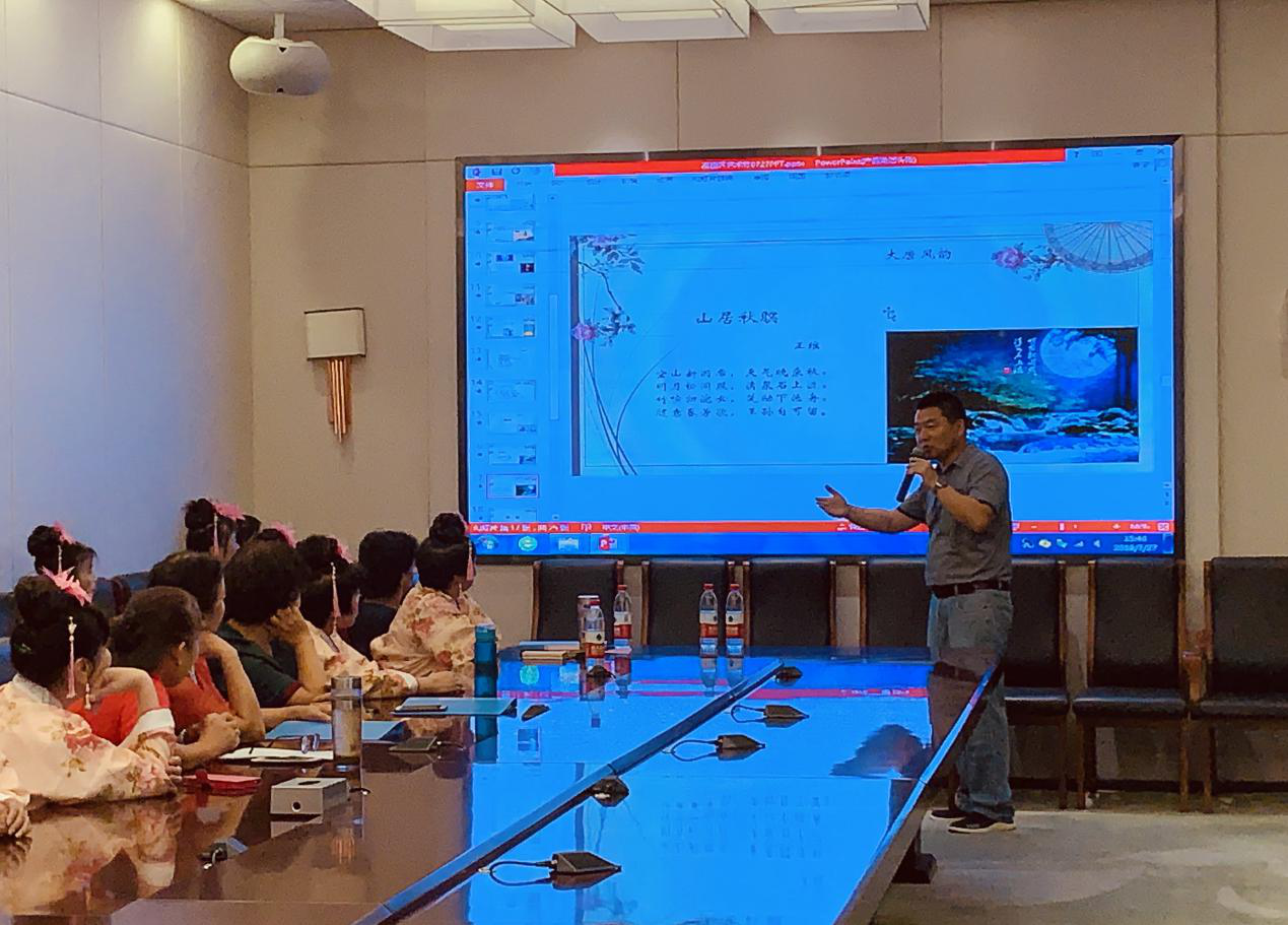 随后,由心与六艺研习会副会长、壹书优秀阅读推广人郝洪担任阅读讲座的主讲人,以“唐诗韵”主题,讲解唐诗的魅力。郝老师从政治、经济、军事等多个方面解析唐诗达到历史高度的必然性。他结合唐诗在文学史上的地位来阐明赏读唐诗的必要性,并表示,唐诗所展现的雄浑大气,诗化了今人的生活,可以将我们的审美提升到一个新高度。