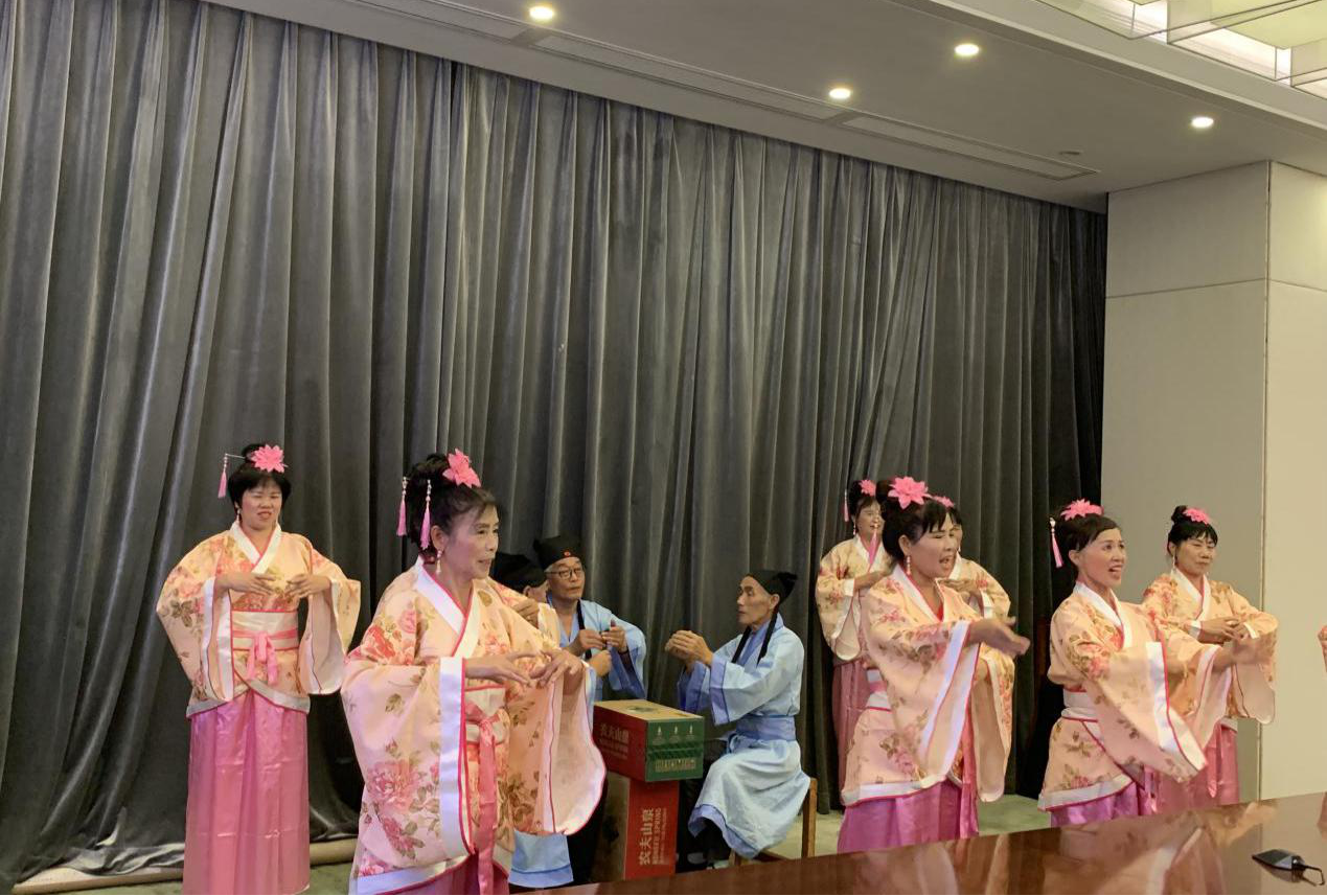 众人瞩目的文艺展演终于来了,社区居民的表演可圈可点、耐人寻味。旗袍秀诗诵《春江花月夜》,诗美、舞美、乐美、人更美,以故为新,别具一番味道;《将进酒》诗舞诵也颇有看头,从服装、道具、编排处处有新意,足见大家的用心,将诗词、舞蹈与音乐融于创作中,给在场居民带来了耳目一新的观赏体验。