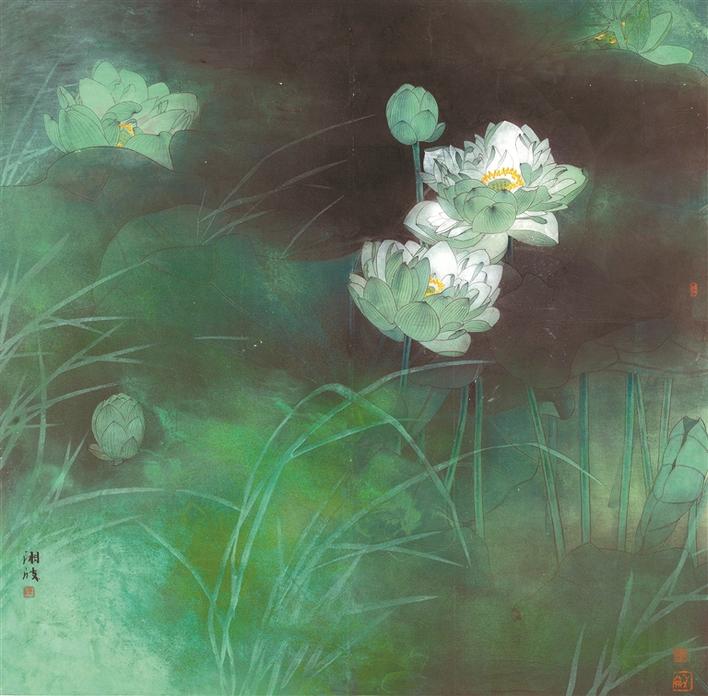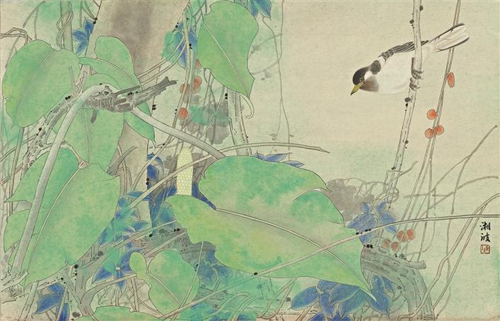 观陈湘波之画,初见色彩章华,画面满纸,复见清淡闲野,如水温柔。陈湘波用力最大、用情最深的工笔画,有着流畅而精细的线条、准确而淡雅的用色,构成清新而沉稳的画面效果。细细品赏“春、夏、秋、冬”的画作时,观众可以体会得到花鸟虫鱼在风雨日月中的生命节律与作者的情感节律相通对应,从而将自然生命的丰富性和独特性呈现出来。自然景物、花草虫鱼,都有自己独特的生命,其纵向的发芽长叶开花凋谢的生命轨迹,和横向的对风霜雨雪、日月山河的承负和感受,是变化无穷意味无尽的。