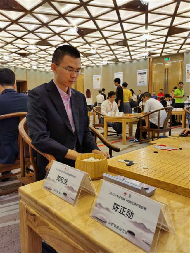 第三台,深圳宏发队的陶欣然八段执白对阵陈正勋。罗洗河九段点评:本局“局面一直纠结,白棋依靠功力慢慢取得优势。黑棋最后破釜沉舟制造打劫,转换后黑棋又亏损认负。”