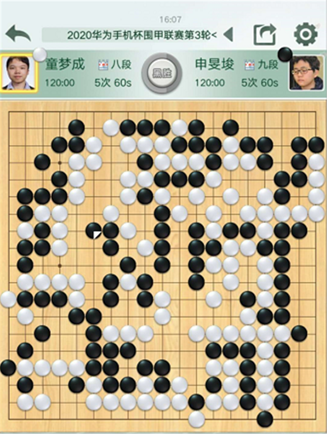 二台,主将申旻俊执白对阵童梦成。局势一直接近。白126、132连续走了小棋,黑开始领先。