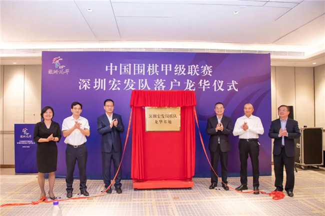 见圳客户端•深圳新闻网2020年11月8日讯(记者周锦春)当日下午,中国围棋甲级联赛深圳宏发队落户龙华仪式在龙华希尔顿逸林酒店举行。伴随着“深圳宏发围棋队龙华基地”的揭牌,深圳宏发围棋队训练基地与比赛主场正式落户深圳龙华。龙华区委书记、区长王卫,深圳市文化广电旅游体育局副巡视员王志强,龙华区副区长邓艳东等领导以及围棋界的嘉宾出席活动。
