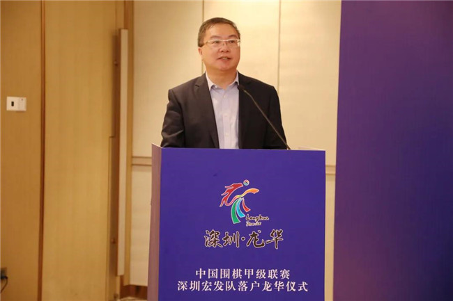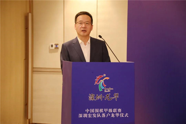 王卫在致辞中表示,围棋源于中国,是中华文明的结晶,发展围棋运动是坚定文化自信、弘扬中华优秀传统文化的重要途径。龙华区每年坚持举办围棋世界冠军龙华行活动,包括李昌镐、柯洁、古力、孔杰、罗洗河在内的多位围棋大咖都曾来到龙华,与区内围棋爱好者现场对弈、指导交流,奠定了龙华围棋运动的广泛群众基础。深圳宏发队作为唯一代表深圳市参加全国最高水平围棋赛事的职业队伍,此次落户开启了双方合作共赢的新篇章。希望深圳宏发队充分发挥自身优势,再创围棋事业新辉煌,努力打造成龙华文体事业新IP。区委区政府将全力当好东道主、打好服务牌,助力包括深圳宏发队在内的各类文体团队发展壮大。