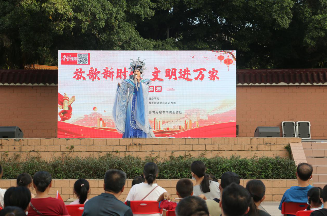 “放歌新时代 文明进万家”文艺巡演由深圳市宝安区西乡街道办主办,深圳市宝安区西乡街道爱之声艺术团承办,宝安区宣传文化体育发展专项资金资助。来自爱之声艺术团的深圳一线文艺工作者们通过文艺表演的形式为广大居民奉献精彩的文艺大餐,用群众喜闻乐见的形式展示西乡发展变化,再现有志之士在西乡干事创业、成就梦想的情景,并宣传了党的十九届五中全会精神,深受群众欢迎。