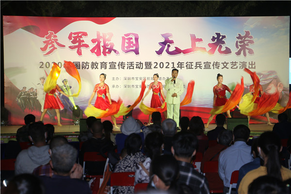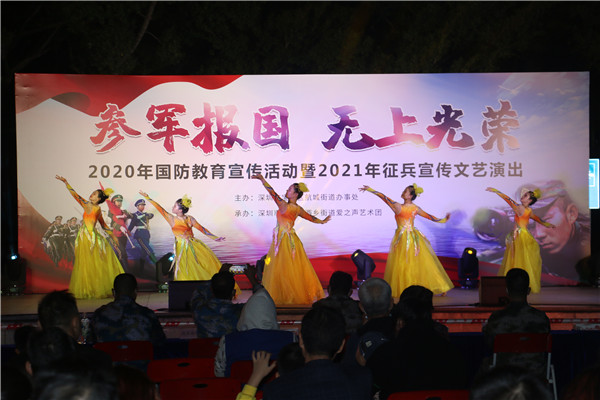 见圳客户端•深圳新闻网2020年12月2日讯 为增强辖区居民的国防意识,做好今年冬季征兵工作,12月1日,深圳市宝安区航城街道办“参军报国 无上光荣”为主题的国防教育宣传活动暨2021年征兵宣传文艺演出在航城街道办成功举办。此次活动由深圳市宝安区航城街道办主办,宝安区西乡街道办爱之声艺术团承办。