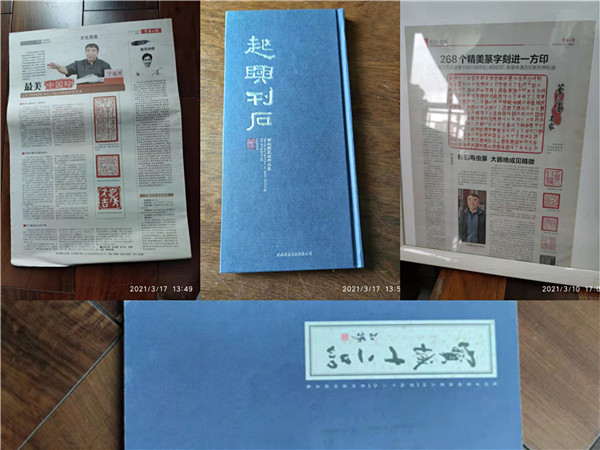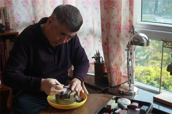 最后,请宁老师对治印的后学说几句,他说“什么时候都不晚,只要肯开始,找到好的老师,持之以恒,便有机会成功”,自己的经历就是一个证明吧。也是,当下中国逐渐进入“老龄化社会”,许多老人退休之后“无所事事”,等退体金、等“临门一脚”成为常态。而宁起兴凭着一份兴趣,六十岁而后拓出一片天地,堪为榜样!令人欣喜是,他的行为对子孙也是一种言传身教,小外孙女2岁时在街上看到篆字招牌,马上就说这是姥爷的字。平日,她还学着姥爷读书刻章的模样,做手工、画画,常有创意。看到这一幕,作为古稀老人,宁起兴感到非常欣慰。他说,自己做到了“老有所为”,还产生了教化子孙的效果,开心是自然的。他希望更多的人喜欢中国篆刻艺术,希望更多的退休老人们生活充实、老有所为!