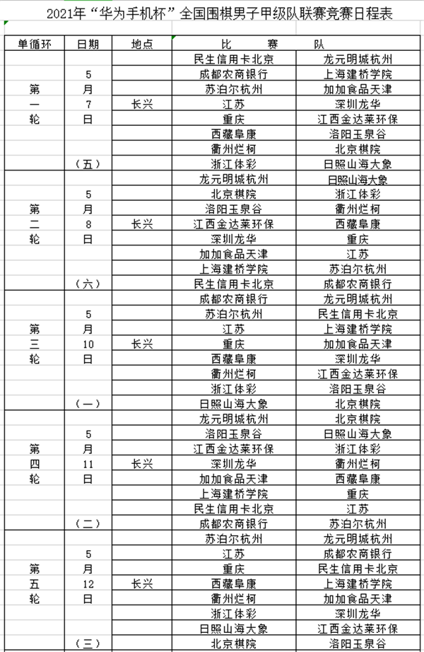 见圳客户端深圳新闻网2021年5月6日讯(记者 周锦春)2021华为手机杯中国围棋甲级联赛今天在浙江长兴拉开帷幕,首轮比赛将在5月7日进行。根据4月22日在中国棋院举行的抽签结果,次日首轮比赛对阵形势如下:深圳龙华队将对阵江苏队;卫冕冠军江西队对阵重庆队;上届亚军日照队对阵浙江队。