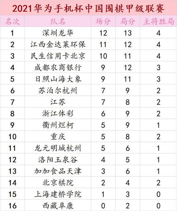 2021华为手机杯中国围棋甲级联赛第四轮深圳龙华3:1胜衢州烂柯