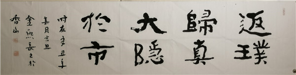 2011年隐居广东中山,处江湖之远亦不忘躬耕,以书立德、以笔润身,专注于佛法经文、家学文化和百家家训书法的研究,并创办五福书院,通过教授古琴、书法、四书诵读等形式开班授课,以中国传统文化践行家学文化。归隐而不忘忧国,金熙长先生自隐居以来,在珠海、中山、深圳、上海等地举办了多次《以书立德、以笔润身——常福居士百家家训、百种心经书法作品全国巡展》;2020年8月,金熙长先生的《方正字迹-金熙长标题体》在方正字库正式上线。