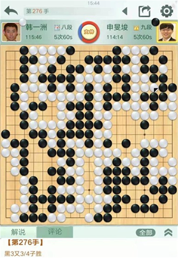 申旻俊主将执黑对阵小将韩一洲,布局局面接近。进入中后盘后,白方明显功力不足,小失误不断。黑棋优势逐渐扩大,最终以较大差距获胜。