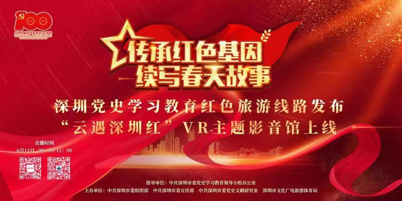 读特客户端·深圳新闻网2021年6月9日讯(记者 田志强)2021年是中国共产党成立100周年,全国上下掀起党史学习教育的热潮,而深圳的“红色历史”,你了解多少?6月11日,“传承红色基因续写春天故事”深圳党史学习教育红色旅游线路发布暨“云遇深圳红”VR主题影音馆上线仪式,将在深圳当代艺术与城市规划馆举办,将发布6条红色旅游线路,共30个景点,由中央广播电视总台央广网、央视网将对仪式及六条旅游线路的红色大巴领游进行直播,每个景点都有一个生动的历史故事,让党史学习教育“鲜活”起来。