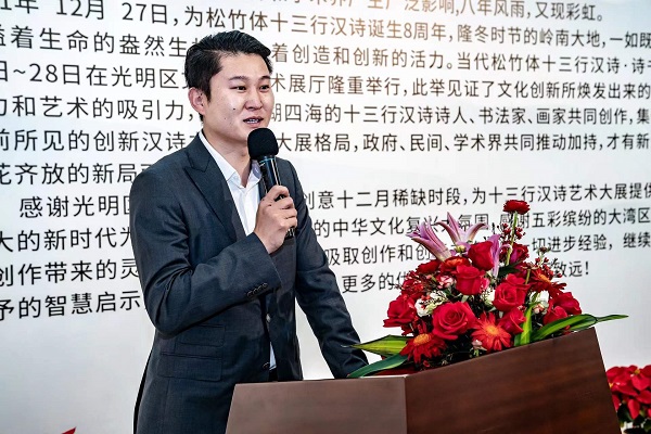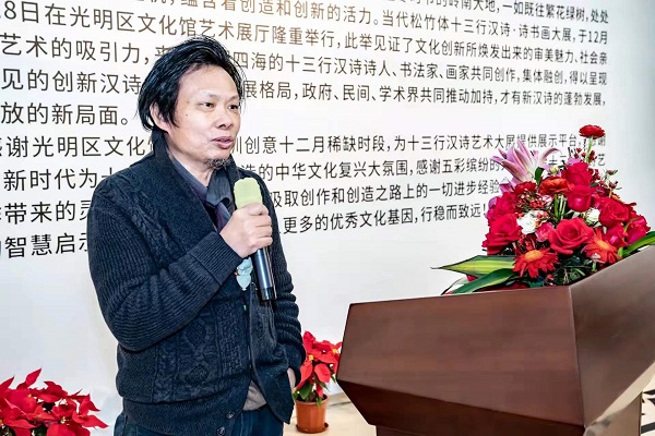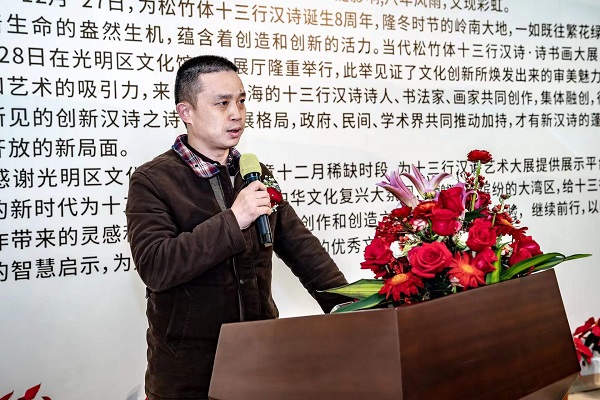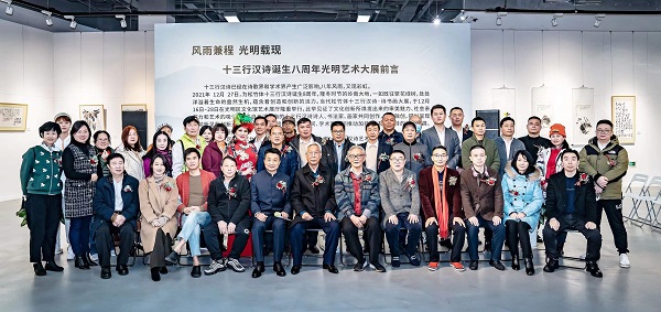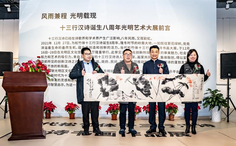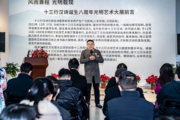 读特客户端·深圳新闻网2021年12月29日讯(记者 田志强)近日,国家社科基金项目“当代汉诗创新诗体研究”阶段性成果展——十三行汉诗书画作品展,于光明区文化馆成功举办。本次展览集中展示本项目重要研究成果、全国各地新汉诗诗人的原创十三行汉诗之书画作品等。十三行汉诗创立八年以来,得到了海内外诗人的广泛关注,在国家社科基金研究团队精研阐释的基础上,得到了学术界的肯定。