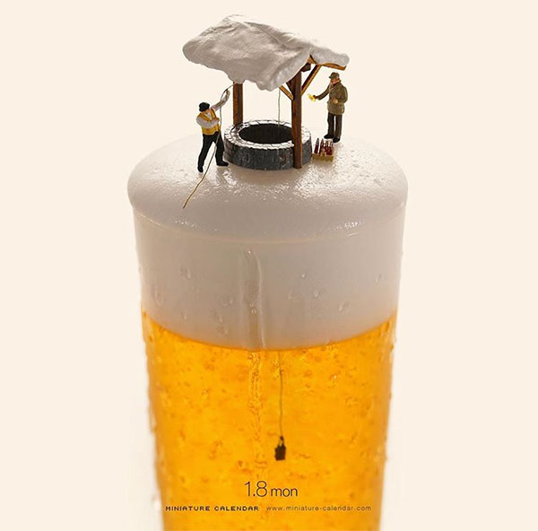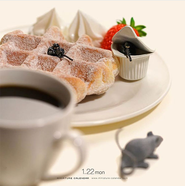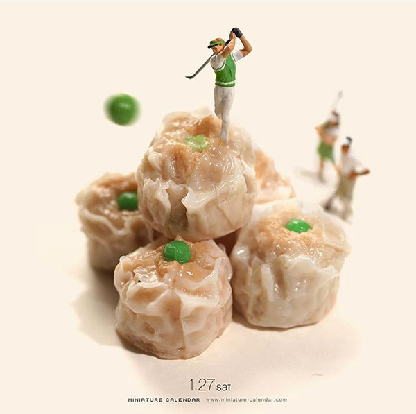 这些内容的作者是Tatsuya Tanaka(田中达也),一位微缩艺术创想者,从2011年至今,专注在这个领域长达7年之久。在他的作品中,缩小比例的人物和日常用品是构成这个微缩世界的重要组成部分,而他的想象力则是让这一切变成“真实”的连线,而美食正是他作品创意的来源之一。