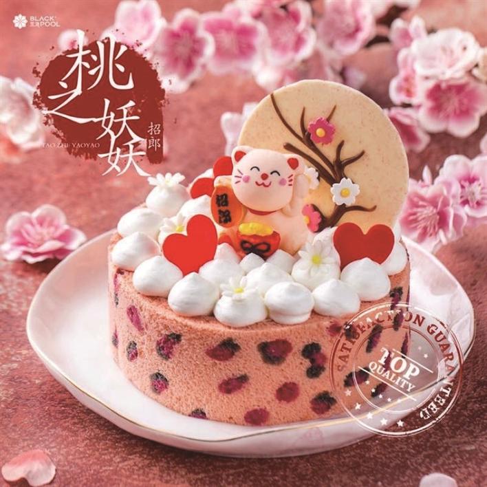 据黑池产品经理介绍,“招郎蛋糕”是黑池最近重磅推出的新产品。蛋糕周围覆盆子果干点缀而成的粉色豹纹,让整个蛋糕充满了野性魅惑又不失少女甜美。最为吸引眼球的,则是蛋糕表面,被桃花簇拥着的一只“招郎喵”。这只软萌可爱的“招郎喵”,象征着,对得到这款蛋糕的人,最美好的祝愿,希望他们能够遇到最好的爱情,找到心目中的那个他。