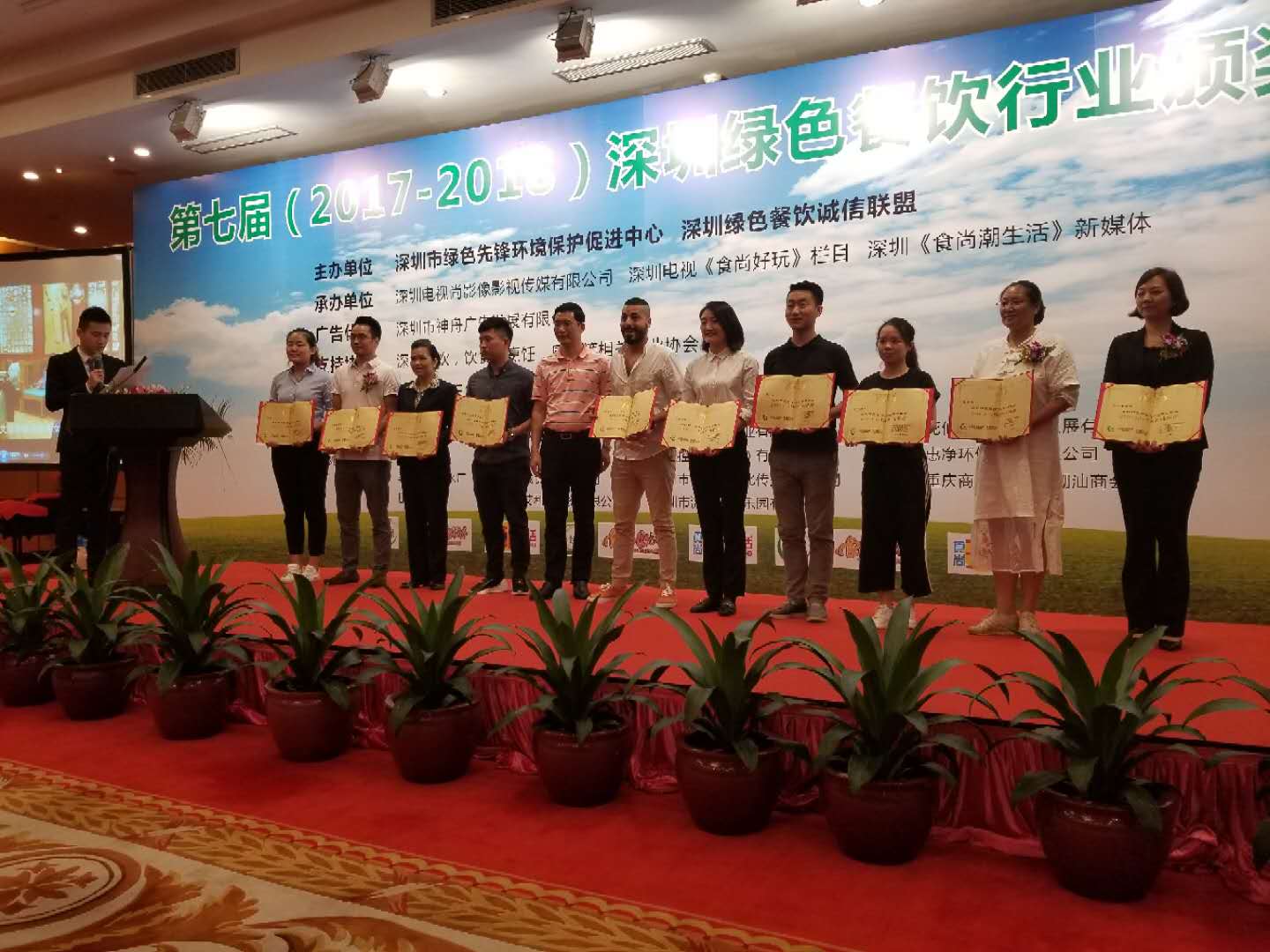 深圳新闻网讯 9月19日,第七届深圳绿色餐饮行业颁奖典礼在深圳市五洲宾馆举行,共有四十家餐饮企业分别获得深圳绿色餐饮十大特色优秀名店奖、深圳绿色餐饮十佳绿色诚信企业奖、深圳绿色餐饮十强连锁品牌企业奖、深圳绿色餐饮特受欢迎时尚餐厅奖,十位餐饮行业杰出代表获得深圳绿色餐饮十佳人物贡献奖。通过此次活动,表彰了深圳餐饮行业坚持绿色诚信标准的模范企业,促进了深圳餐饮行业向着绿色、环保、健康、安全道路发展。
