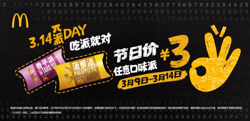 麦当劳中国在3月9日-3月14日举办第五年“派DAY”活动