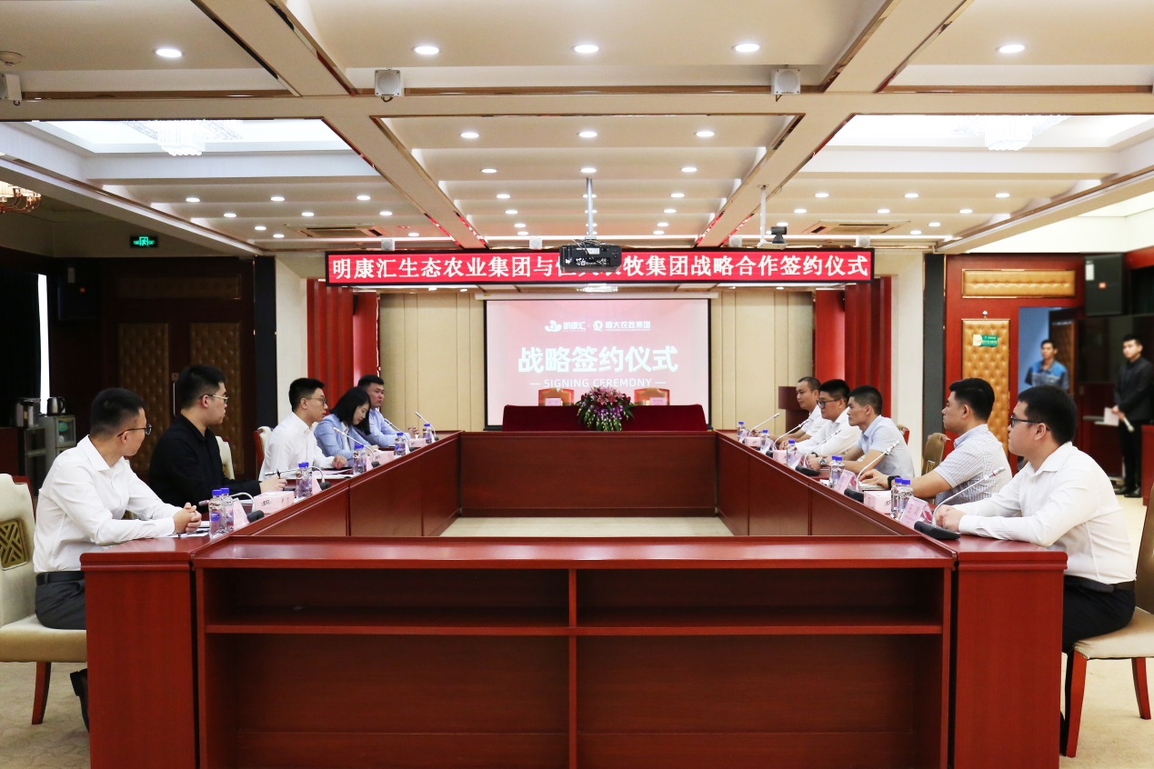 深圳新闻网2019年9月24日讯9月20日上午,恒大农牧集团有限公司(以下简称“恒大农牧”)与世界500强海亮集团旗下明康汇生态农业集团有限公司(以下简称“明康汇”)签订战略合作协议。双方将充分发挥各自优势,进一步推进业务整合,深化资源利用,提升战略协同层次和水平。恒大农牧总裁王宇丰、恒大粮油董事长汪茜、明康汇总裁冯剑鲁、明康汇副总裁高世俊等出席签约仪式。