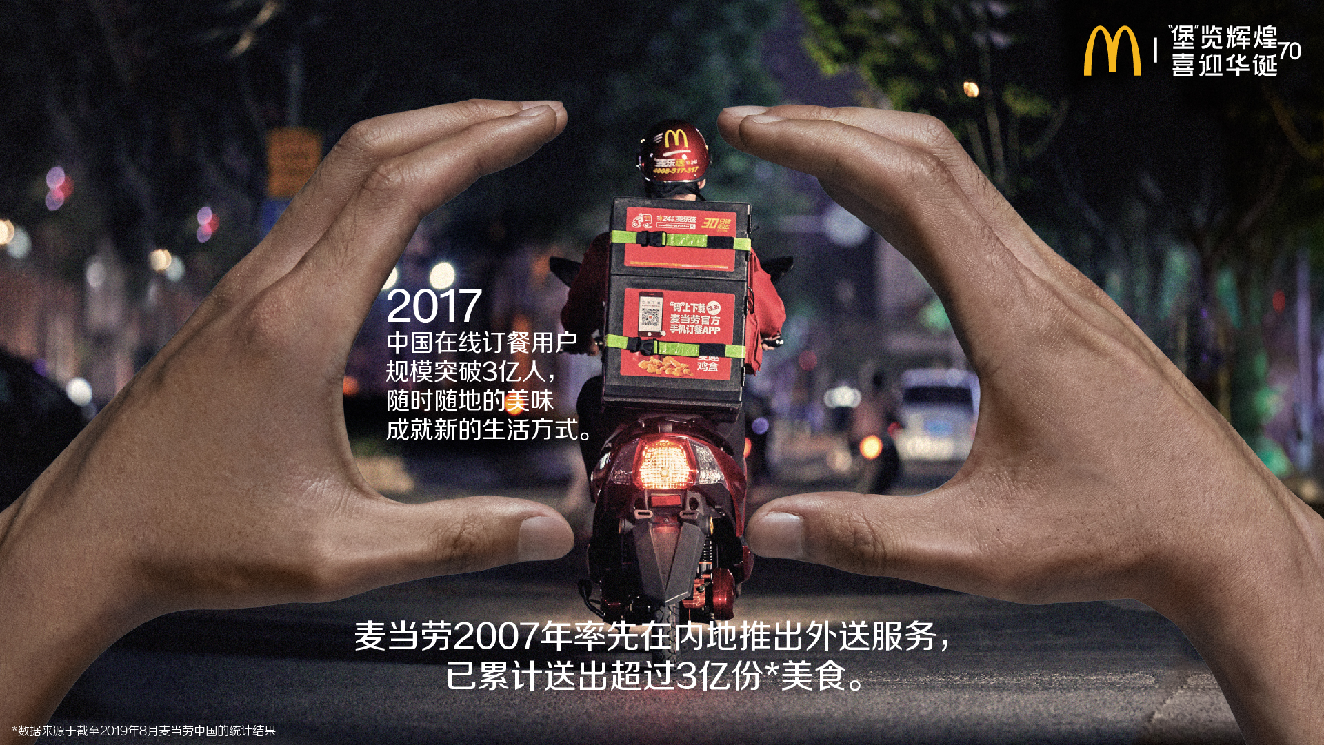 外送生活,方便美味:2017年,中国在线订餐用户突破3亿人,外卖已成为一种生活方式。麦当劳中国于2007年率先推出外送服务。截至2019年8月,麦当劳累计送出超过三亿份餐点,让消费者在不同场景下享受高品质的食品。(常军平)