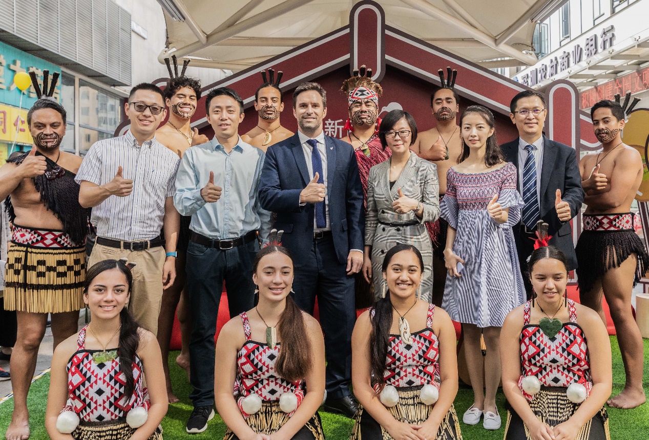 13日,来自新西兰的毛利舞团在深圳龙华花半里清湖花园举行了一场快闪活动,新西兰贸易发展局商务领事Richard Dunsheath、新西兰贸易发展局商务官员Joseph Li、百果园集团副总裁焦岳、百果园集团营销中心高级总监杨茜、百果园集团品类副总监徐欣、佳沛客户经理Elsa、乐淇中国区市场总监戴越等领导出席现场,共同为这次活动剪彩。