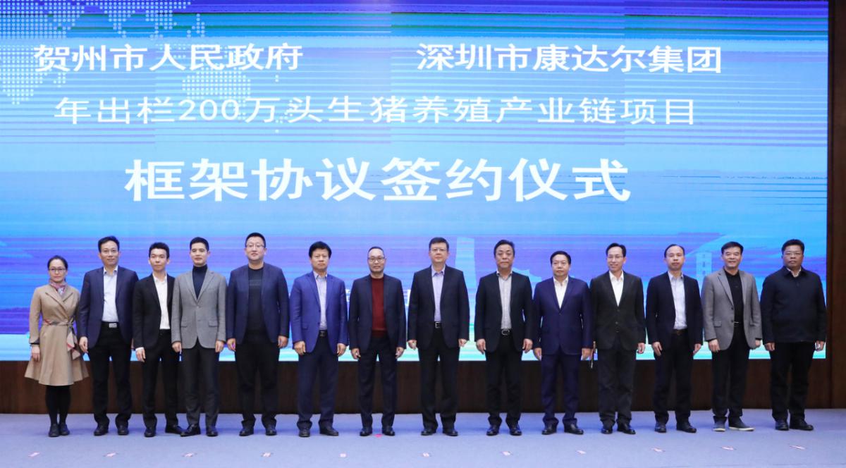 见圳客户端·深圳新闻网2019年12月02日讯 继11月18日在海南文昌拿下30万头生猪产业链项目后,2019年11月30日,深圳市康达尔(集团)股份有限公司(以下简称“康达尔”)与广西壮族自治区贺州市人民政府签订了《康达尔贺州市年出栏200万头生猪养殖产业链项目投资框架协议》,在生猪养殖领域跑出了“加速度”,为公司加速布局粤港澳大湾区、实施其“深化农业主业发展”战略规划再注入一剂“强心针”。