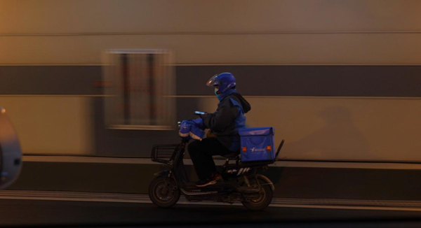 疫情期间,饿了么外卖骑手在武汉地区送餐