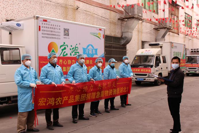 见圳客户端·深圳新闻网2020年2月12日讯 2月9日,载有猪肉、冷冻品、蔬菜等疫区人民急缺的农副产品的卡车从宏鸿农产品集团总部驶出,25个小时之后,这一批总价值近30万元人民币的应急物资将运抵湖北省孝感市。