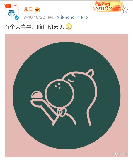 见圳客户端·深圳新闻网2020年3月12日讯 3月10日,盒马官方微博发布了一张浮想联翩的海报。有眼尖的网友一眼看出,图中盒马IP酷似喜茶形象:“盒马和喜茶要搞什么大事情?”