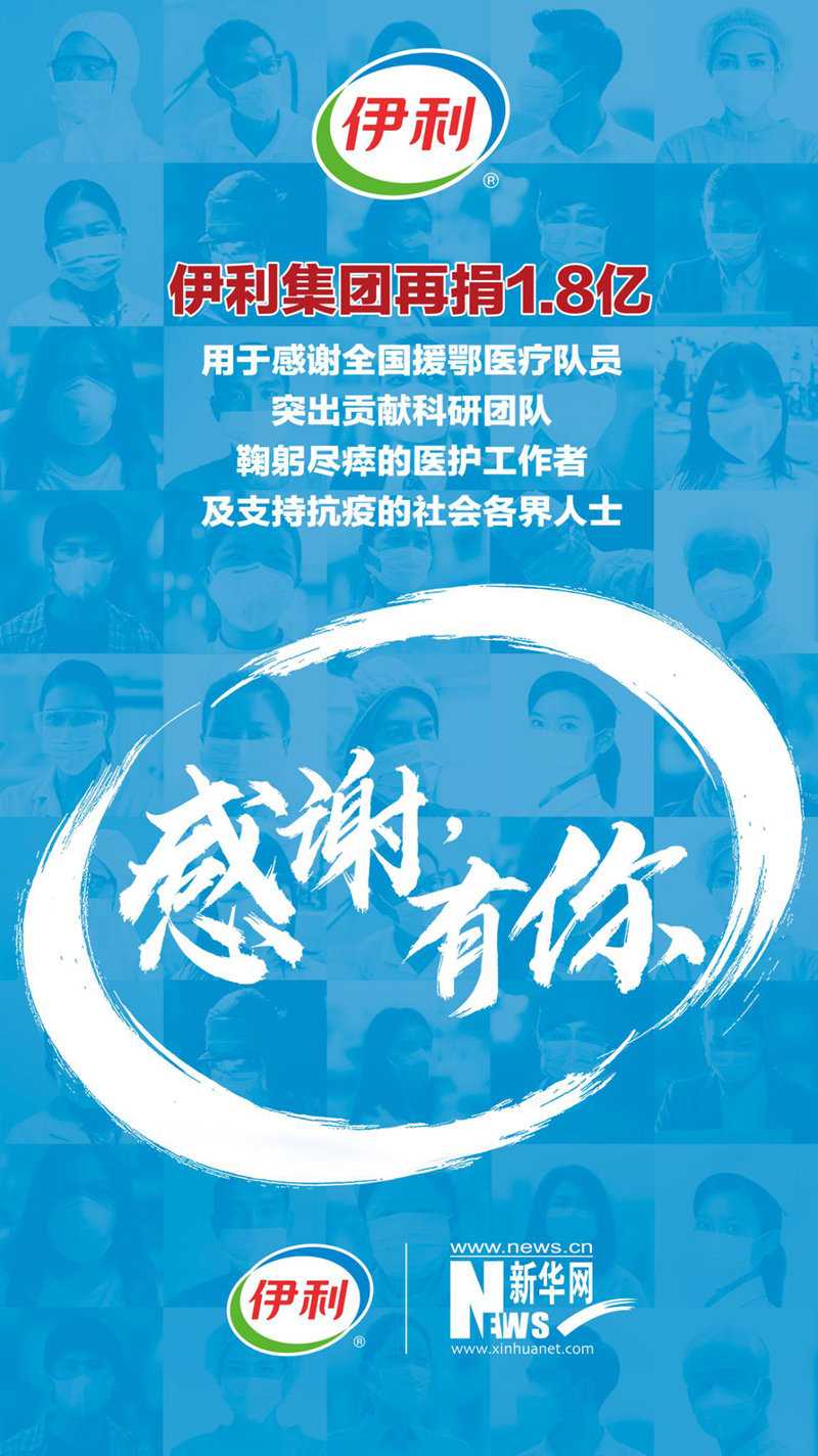 新华网北京3月26日电(胡可璐) 在这场战“疫”中,无数平凡英雄带给我们最多感动,他们以“逆行者”的无畏和担当筑起疫情防控生命线,守护着人民,守护着国家。3月26日,伊利集团再捐1.8亿,第一时间购买京东购物卡,赠送给全国所有援鄂医疗队员,向他们提供全年营养支持;向钟南山院士、李兰娟院士、程京院士团队捐赠1500万元,感谢科研工作者做出的突出贡献,共同推动健康领域的科研攻关;第一时间购买京东购物卡,赠送给这次抗击疫情中因公殉职医护工作者的家属,为他们提供连续十年的营养支持;同时也向奋战在抗疫一线的社会各界人士提供营养保障。责任无界,大爱无疆,伊利累计捐赠额度将达2.8亿,共迎抗疫胜利。