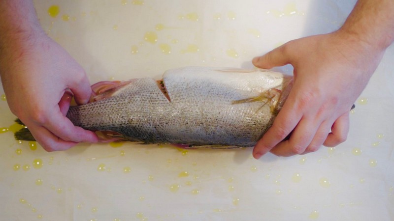 1、清除鲈鱼内脏以及鱼鳞。用盐和胡椒给鲈鱼调味,再将百里香塞入鱼肚内辟腥。土豆切块;