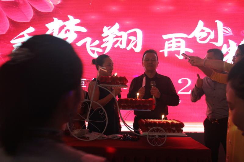 晚宴环节,精彩节目不断,T台秀、舞蹈表演、歌曲演唱、小品表演、自由唱跳环节等,由此,庆典进入晚宴和抽奖环节。开场酒过后,全体同仁一边就餐一边欣赏表演节目,热闹喜庆。当工作人员推出应典蛋糕时,谭总、周总一同上台切蛋糕与全体嘉宾一起分享,庆典瞬间进入了高潮,大家见证了藏虫草健康平台两周年的辉煌,是对平台的肯定,也有对未来的美好期昐!