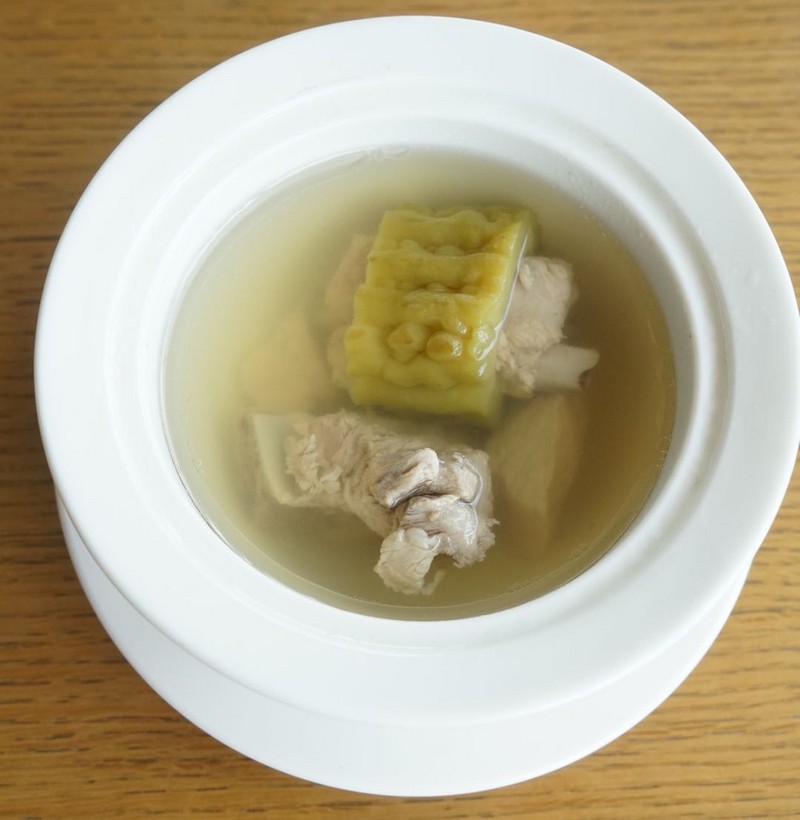 若是清蒸的做法,那么凉瓜的风味恐怕是发挥到高点。有一做法,将凉瓜与河海鲜的“鲜”结合到一起,同时让凉瓜吃出清甜来:古法蒸鱼头。鱼头底下垫着的不是丝瓜,而是更加应景的凉瓜。厨师一般用本地的凉瓜,经过稍微的糖渍,令涩味渗出,甜味悄然渗入,待到蒸后,凉瓜吃来清、爽、甘、甜。此外,它吸收了鱼头的鲜。顺德餐厅的师傅对鱼的制作颇为讲究,鱼头的汁酱、蒸鱼的火候,都尽在他们的拿捏中。这么一来,原本不愿意吃凉瓜的食客,恐怕也要打破多年来的难忍之情,一吃再吃了。