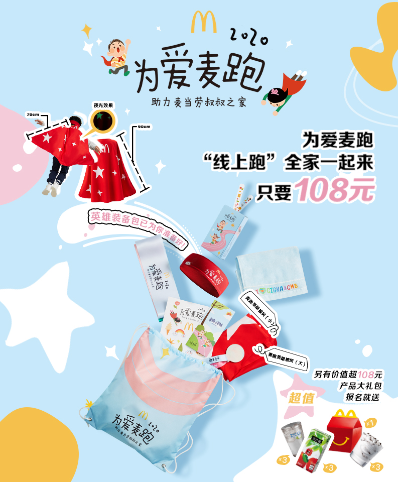 报名“为爱麦跑”即享超值装备包以及价值超百元的麦当劳产品电子兑换券