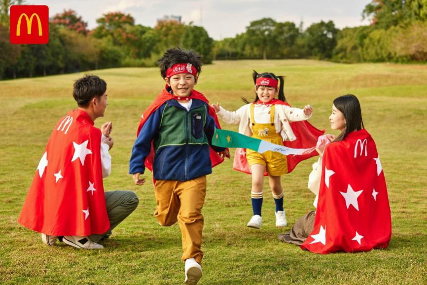 装备包的内容更是惊喜不断:有白天积聚能量、晚上发光的一大一小两件披风,有小英雄互动游戏任务盒和跑步冲刺带等,以及价值超百元麦当劳产品电子兑换券。装备包里,还有特别使用回收的开心乐园餐玩具为原料制成的奖牌,让每位“麦跑小英雄”体验到欢乐、环保和公益。