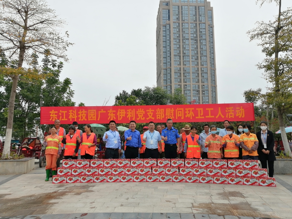 初心不渝,持续践行社会责任。广东伊利党支部始终秉承“吃水不忘挖井人”的精神指导,高度践行企业的社会担当。在园区综合党委的关怀下,组织开展“热心公益行”活动,为园区辛勤工作的环卫工人送去“营养标配”,捐赠牛奶45箱。“为他们送去健康,践行企业社会责任,这是我们伊利应该做的”支部书记李江飞说到。