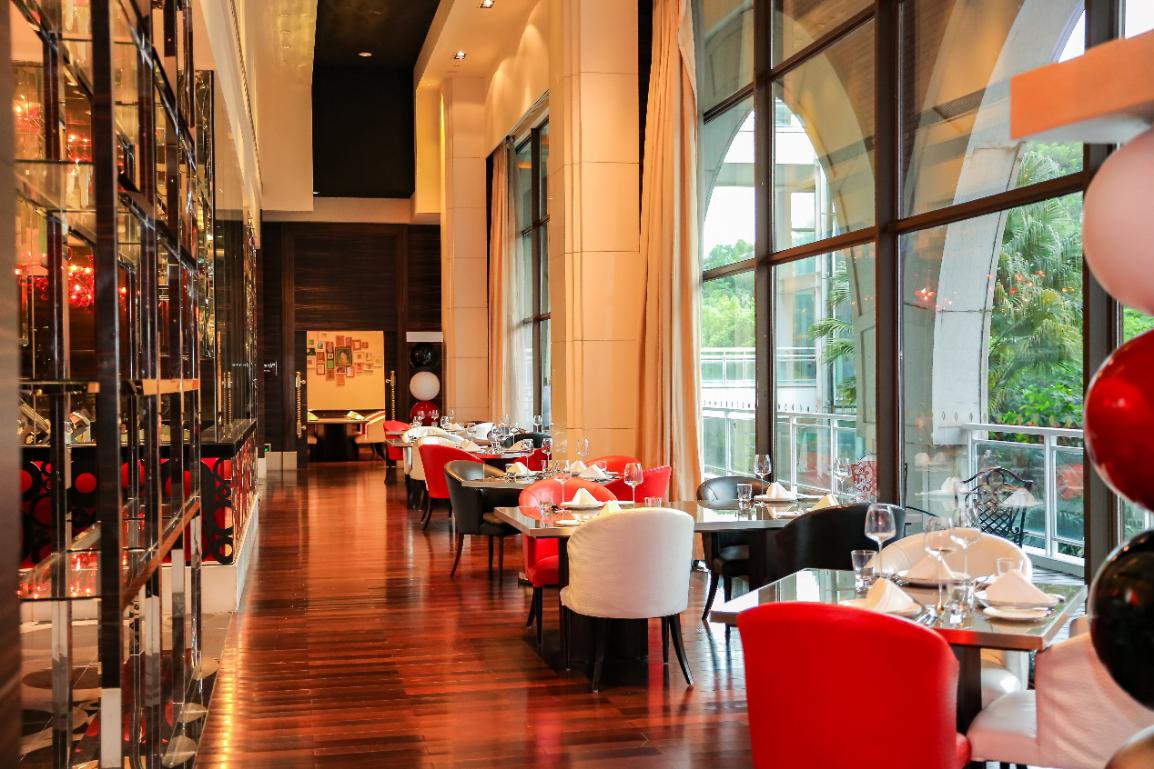 Pipette Bistro法国餐厅极具艺术气息的前沿设计与美食佳酿相映成趣,挑高的就餐空间,搭配开放式厨房,让就餐体验更为灵动。随处可见的环形装饰设计理念来源于法国香槟中肆意跳动的气泡,Pipette Bistro对精致的追求从厨房里那套红色的“法拉利”厨具可见一斑,纯手工锻造的欧洲厨房顶级品牌Molteni烹饪炉具,来自法国普罗旺斯,特殊的材质可以把热度传到台面每个角落。除了开放用餐区,五间主题贵宾包房在黑白两色的基础上,装饰风格添加暖色基调,图书馆、香槟房、拿破仑、红酒房和拉图房将私密用餐提升到新高度,拉图房由闻名世界的Chateau Latour酒庄和华侨城洲际大酒店联手打造,房间里珍藏了Latour地图、量酒器、书籍以及由Latour总裁给酒店的一封祝贺信。