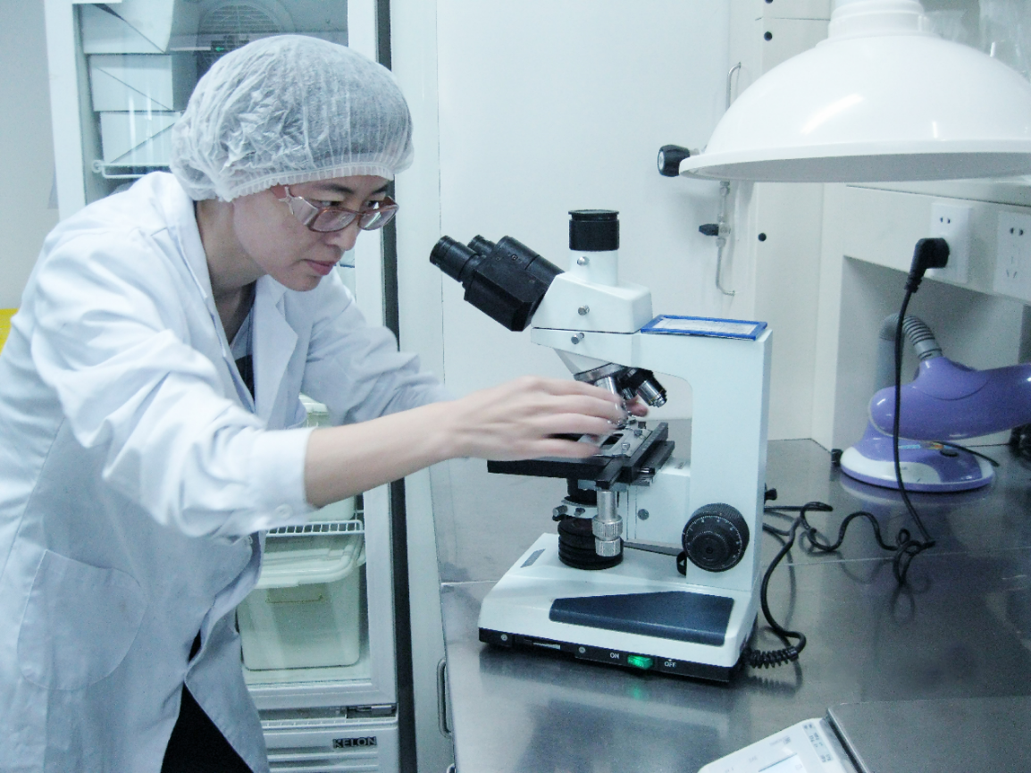 孟根花在进行产品微生物检测