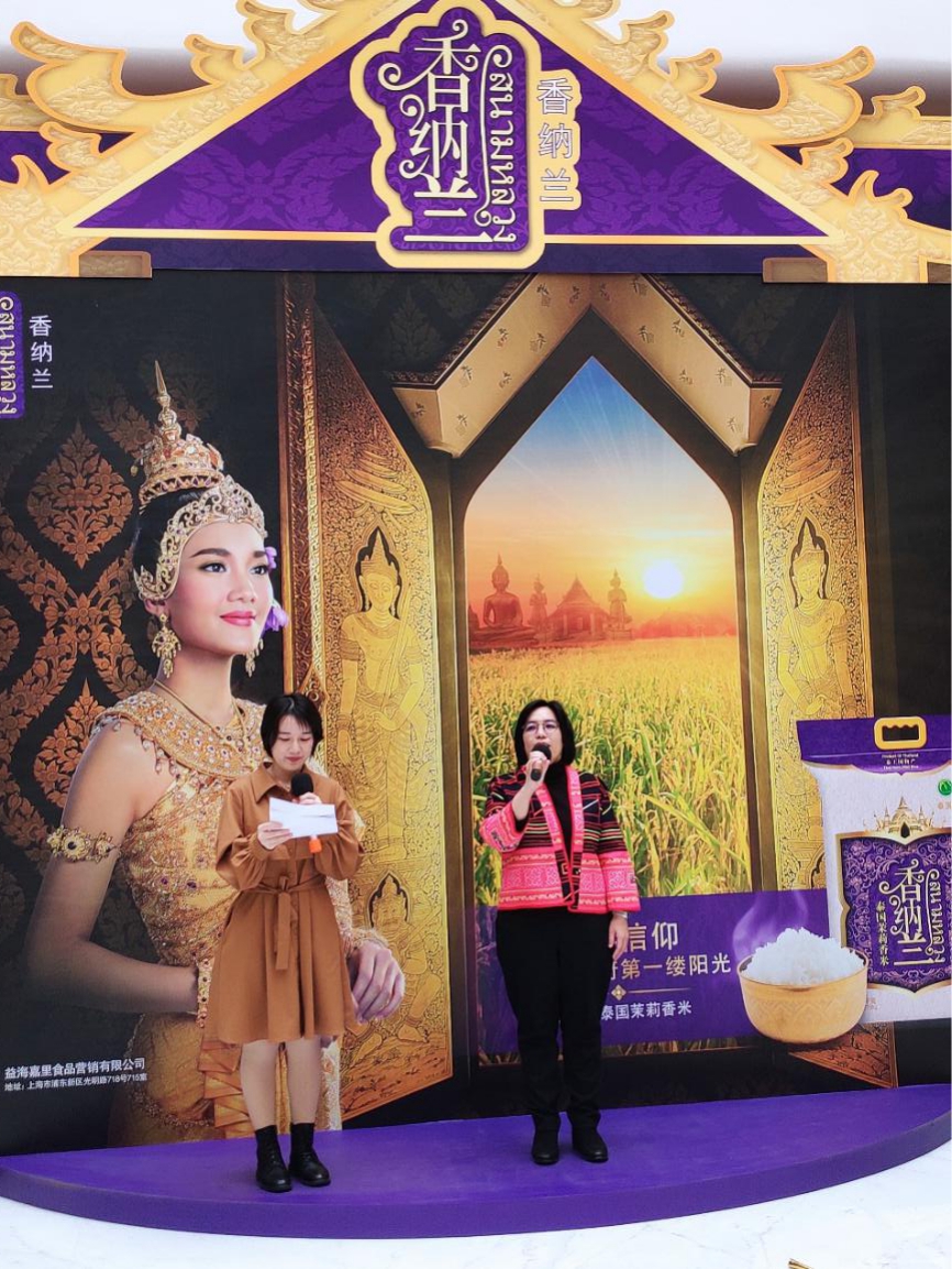 12月7日,香纳兰“泰”好吃乐,阳光之旅/益+秀新米品鉴展示活动在上海金龙鱼大厦隆重举行,益海嘉里集团特邀泰王国驻上海总领事馆农业处领事吴佩贤女士参加活动并致辞助力香纳兰,本次活动形式丰富多彩,不仅有干货十足的泰米知识介绍和专业泰厨现场教学,还有美味的泰米试吃和有趣的互动游戏。与此同时,本次活动将通过线上直播扩大传播范围,让更多消费者了解香纳兰品牌的同时也能感受到独特的泰国文化魅力。为了让中国消费者更进一步了解泰国茉莉香米在泰国人民心目中的地位,泰国领事吴佩贤女士在直播间和粉丝做了短暂的分享。
