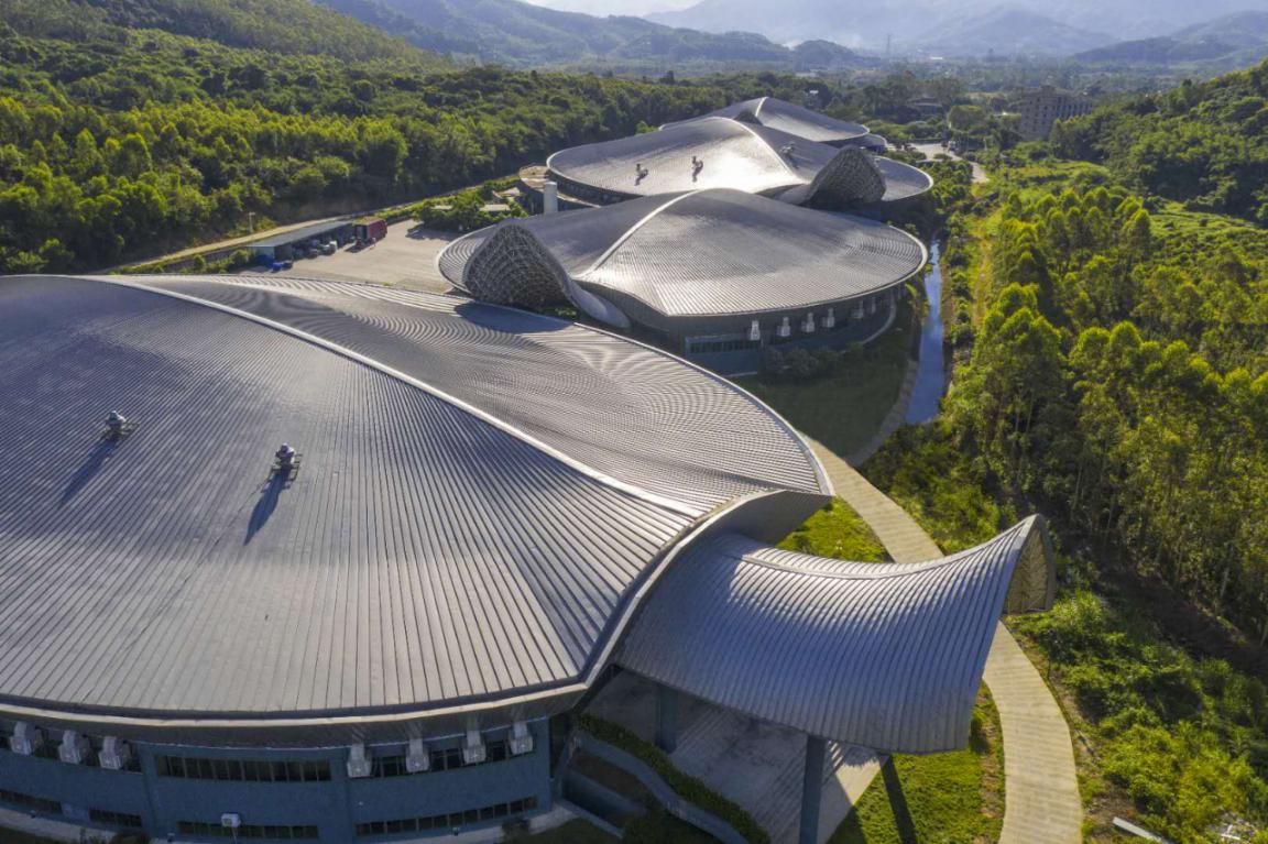 百岁山生产基地坐落在罗浮山脉脚下,整个工厂与周围的自然生态融为一体。进入厂区后,整洁开阔的道路、郁郁葱葱的树木、颇具艺术感的银龟型厂房,都让人不敢相信这里是一个工厂,简直就是旅游景区,也太美了吧!