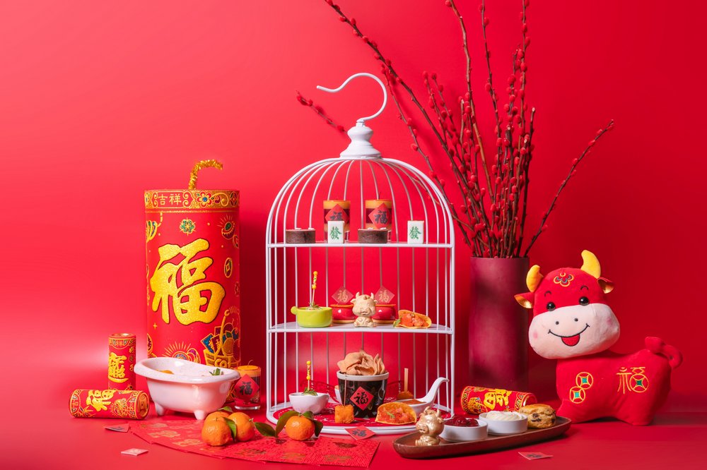 酒店特别推出的“新春下午茶”则是在西式甜品中融入中国元素,赋予传统吉祥的寓意和鸿运当头的美好祝福,让人爱不释手:浓郁香醇的巧克力幻化成栩栩如生的金牛,俏皮之余更添节日喜庆;象征“福气高”的发财年糕糯香甜蜜,还有芒果树莓杯里的火红炮竹、满载好意头的“发财”麻将芝士蛋糕、榛子巧克力挞上绽放的娇艳春花,无不彰显着浓浓年味,而偏爱中式茶点的您绝不能错过香酥可口的蛋散。搭配酒店甄选香茗,这款“金牛报喜”新春下午茶满载款款心意,是与亲朋共度闲适假日午后的不二之选。