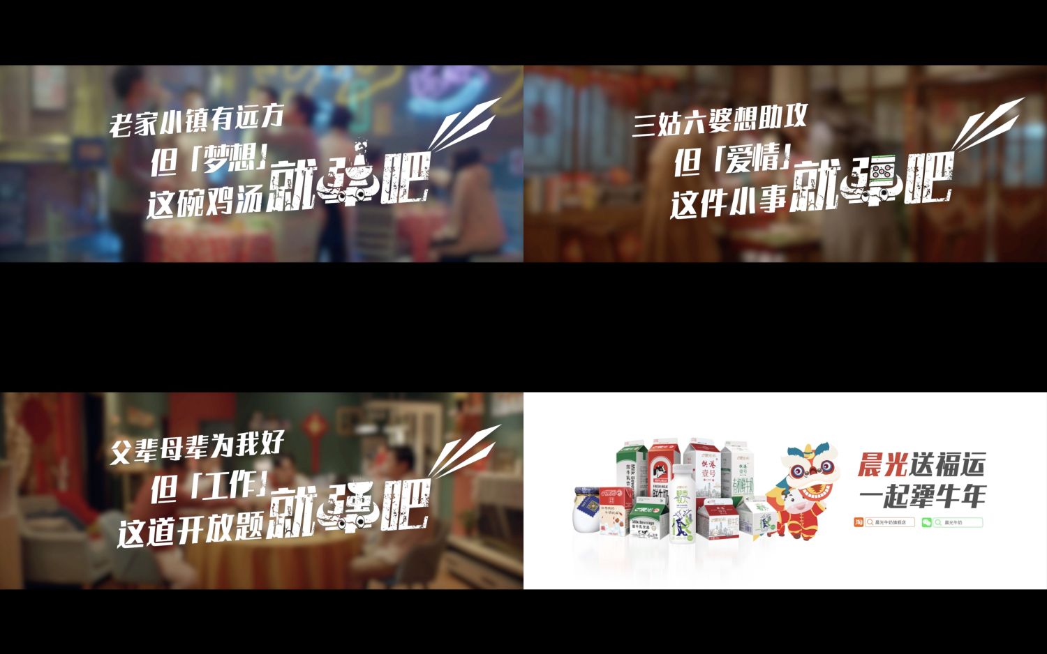 从“就这样吧”到“就犟吧”,暗含了当代人面对挑战不服输的精神,也正是品牌想传递的态度。该片以春节社交场景常见矛盾为锚点,连接品牌与用户,获得了广泛好评。牛奶作为力挽狂澜的“道具”,每每在尴尬时刻,都发挥了救场作用,俏皮的品牌形象跃然纸上,加强晨光和消费者的情感链接。截止发稿,累积曝光量就高达已超过1500万次。