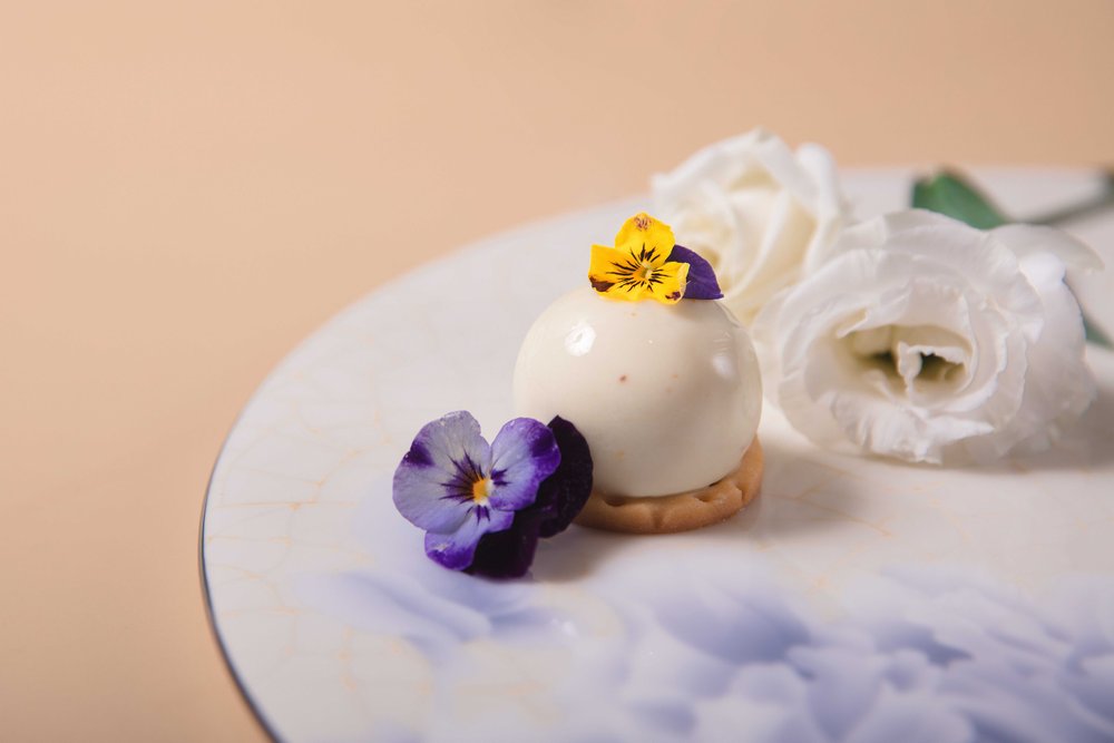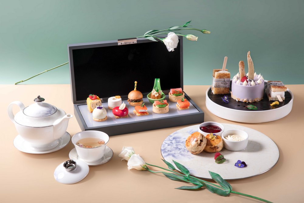 酒店饼房厨师长赵伟融汇创新,选用当季新鲜花材与鲜爽水果,打造了数款意趣多彩的甜品佳作:茉莉百香果椰子蛋糕,茉莉花的清新邂逅酸甜的百香果与香浓的椰子,细品层叠交融的奇妙滋味;洛神花玫瑰蛋糕,玫瑰的馥郁悠长糅合洛神花的明快艳丽,一口便是春天;青柠春茶蛋糕,别具创意地将青柠和碧螺春茶融合,酸爽口感里裹挟着若隐若无的茶香;桂花米酒蛋糕,当桂花飘进米酒,花香伴着微醺,细腻绵柔,在唇齿间琢磨品味;水果“炸弹”,轻轻一敲,冰爽可口的水果倾泻而出,果香四溢,是视觉和味觉的盛宴。咸点也是不可错过的味蕾礼赏:肉质鲜嫩的蟹肉和清新爽口的牛油果巧妙融合,呈现海陆鲜甜交汇的美妙体验;细腻鲜美的三文鱼,配上丝滑浓郁的奶油芝士和诱人的鱼子酱,是一场舌尖的奢享。随下午茶搭配的新鲜烘焙司康饼,花香果香四溢的花茶,更增添午后的曼妙意趣。