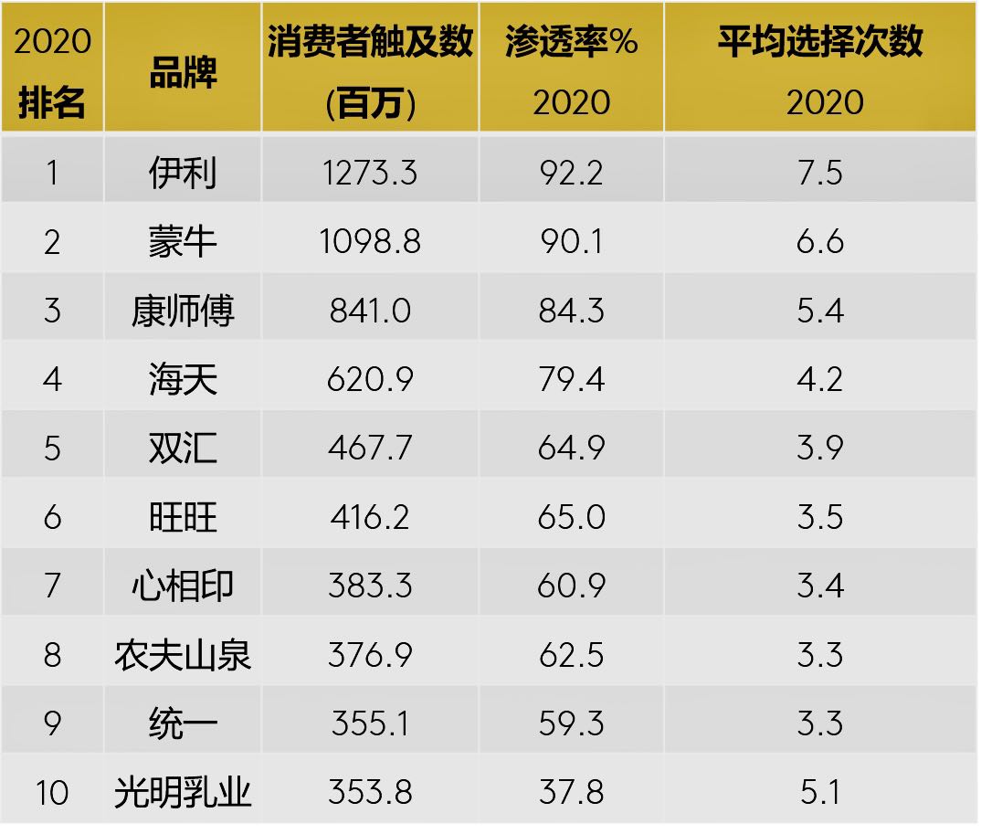 伊利连续6年稳居中国市场消费者选择最多的品牌榜首